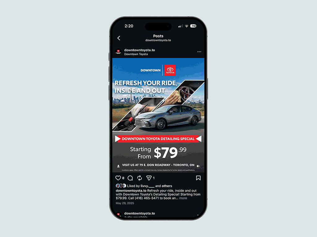 Hello, I’m Olivia Wildish, a Graphic Designer currently working in-house at Downtown AutoGroup. I create digital and print marketing assets that support consumer-facing campaigns, promotions, and overall brand visibility. My work spans social media content, motion graphics, editorial layouts, and web visuals, and I collaborate closely with marketing teams while managing projects in fast-paced environments.