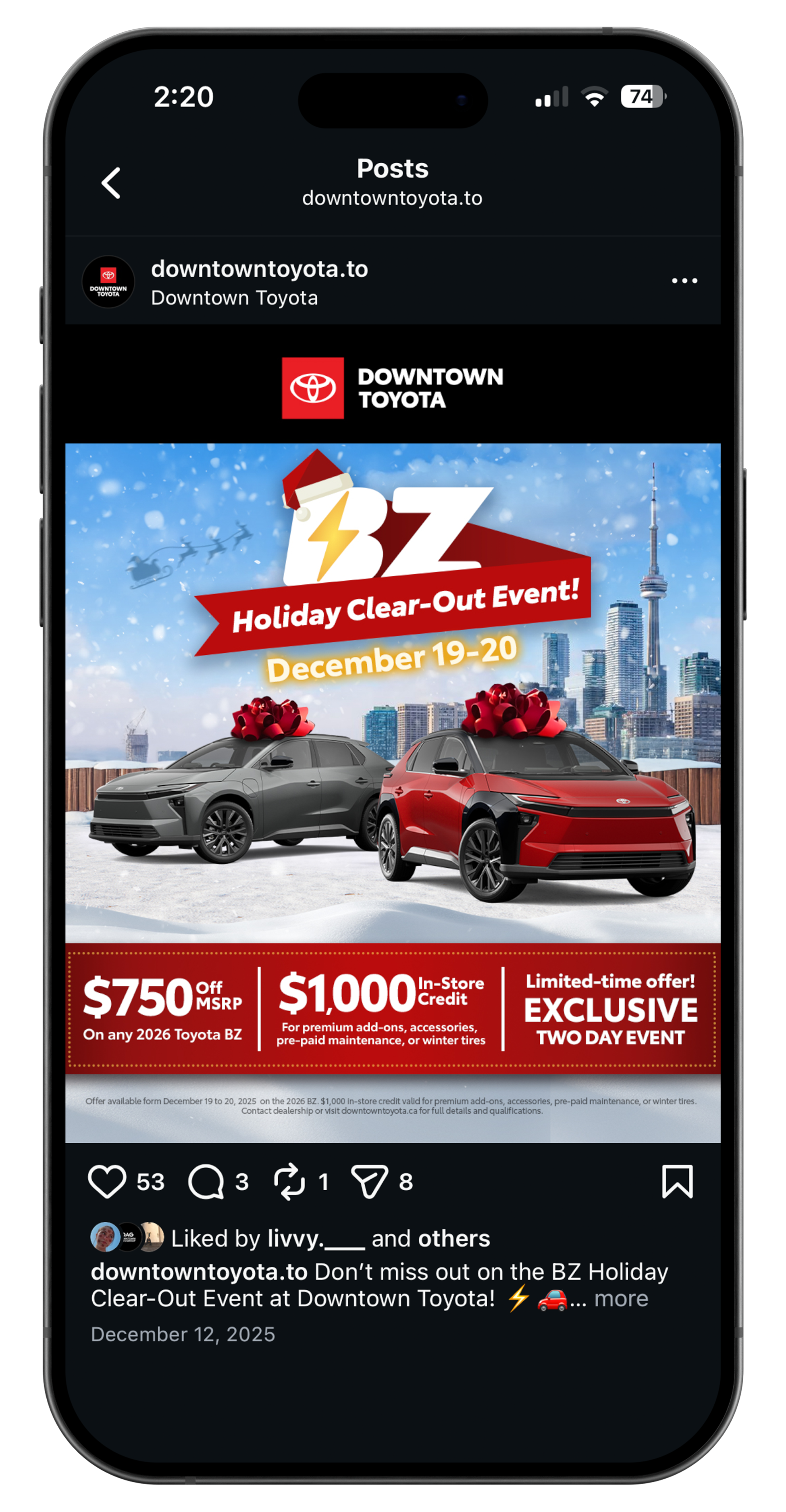 This is a collection of static and video social media content created in-house at Downtown AutoGroup.